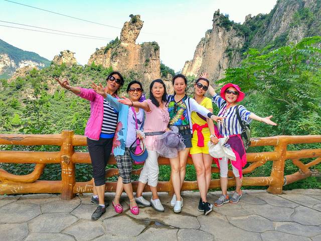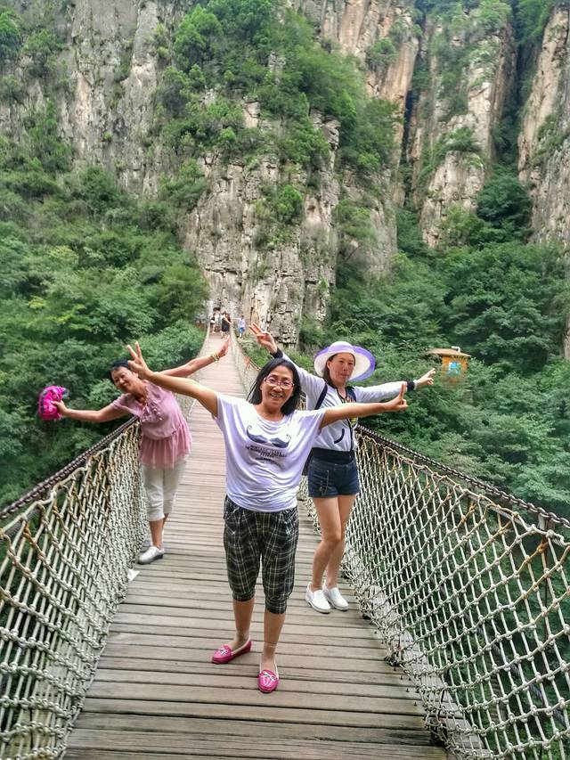 景点有人说好,有人说不好玩,没有什么意思。我到是很喜欢这样的山水自然景观,和姊妹们在一起游走在山水之间,既锻炼了身体又看了美景,何乐而不为。太行山大峡谷游览收获了美景增进了姊妹情,车行驶在盘山公路上曲曲弯弯。。。。。。,进入G55高速,车沿着家的方向前进,夕阳伴着我们一行快乐的回家。