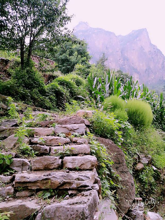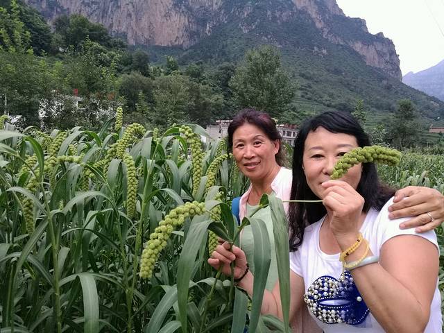 过了小溪,沿着羊肠小道我们走进山里,这里住着几户人家,山坡上各种玉米谷子蔬菜梨树让我们兴奋,
