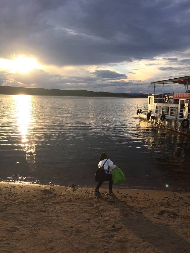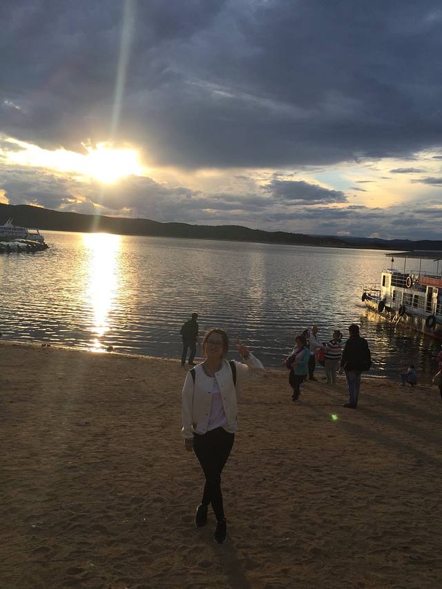 水暖暖的,当时到那大概5:30,7:30天会完全黑,特别建议大家就在湖畔散散步,玩玩水,看看夕阳,云彩,我们中间还去吃了饭,办了入住,所以只看到天黑之前的一部分景色,如果能看到日落全程记录下来,肯定特别美。