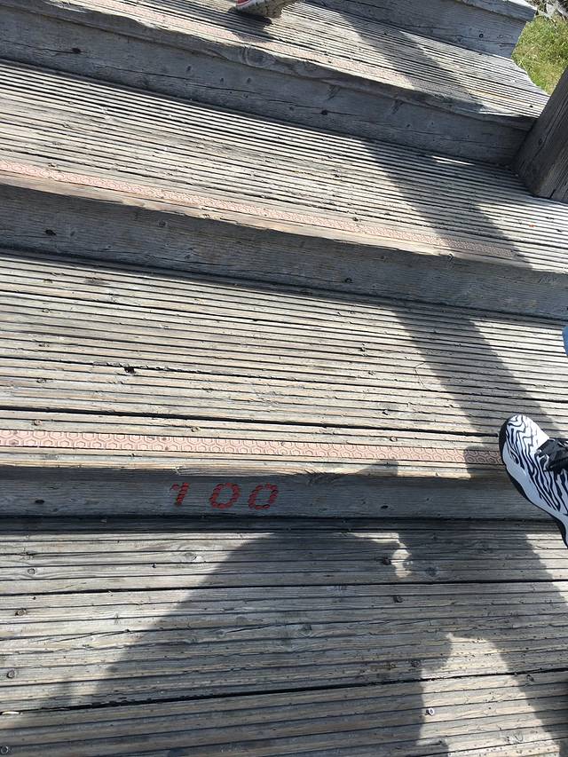 台阶下面有记数的,路两边也会有鼓励你的,走到三分之一啦,加油类似的话,会出汗,快到顶上了风还是有些凉的,建议还是穿点外套。