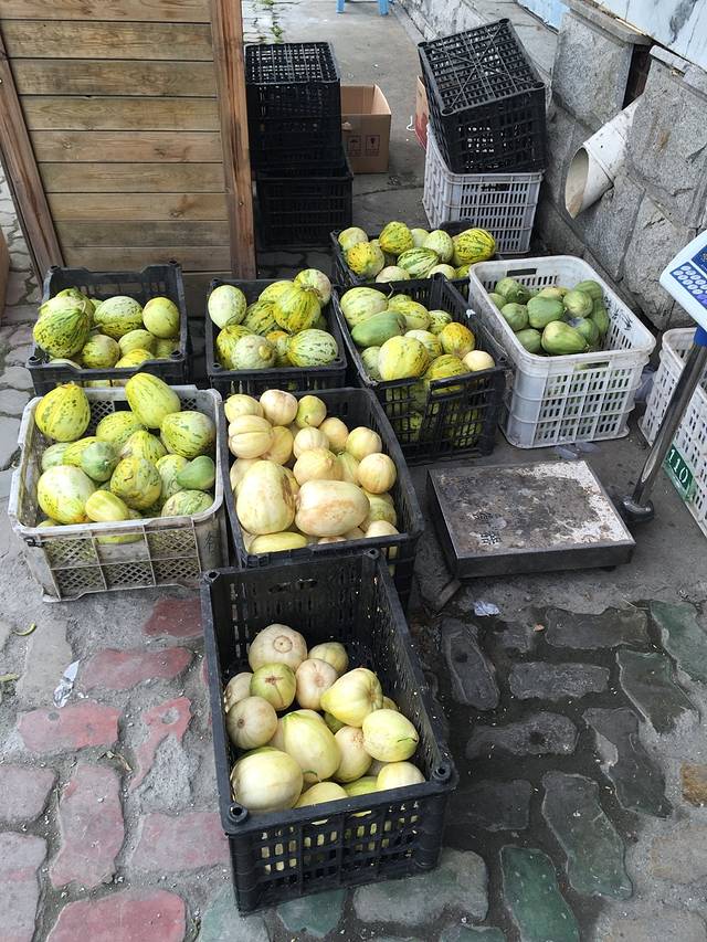 好多卖甜瓜的,基本上3元一斤,和家里差不多,买了一个,还挺甜的。