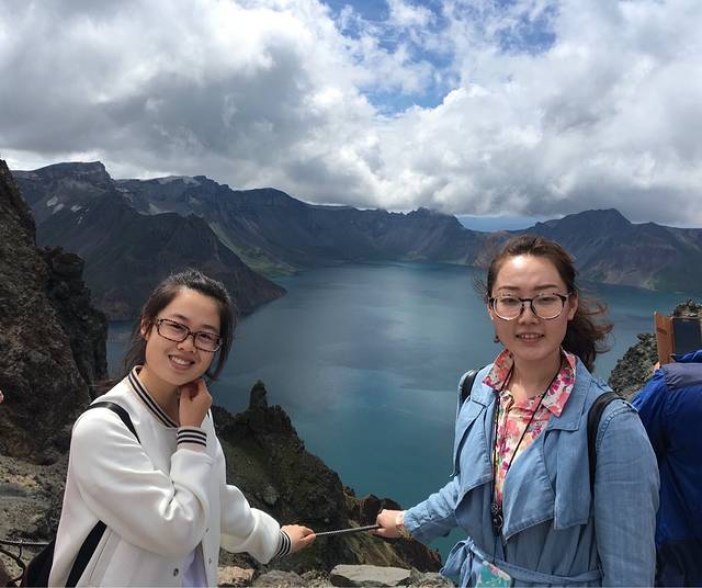 苗导说,天池就像一个碗里的水,北坡相当于站在碗边上看,是俯瞰,从这个角度也可以拍出和天池的合照,但由于山挡着,只能看到一部分,西坡相当于站在碗中间,虽不好合照,但可以看到全景,视野也更开阔,两坡除了天池,还有别的小景点,所以都值得去。