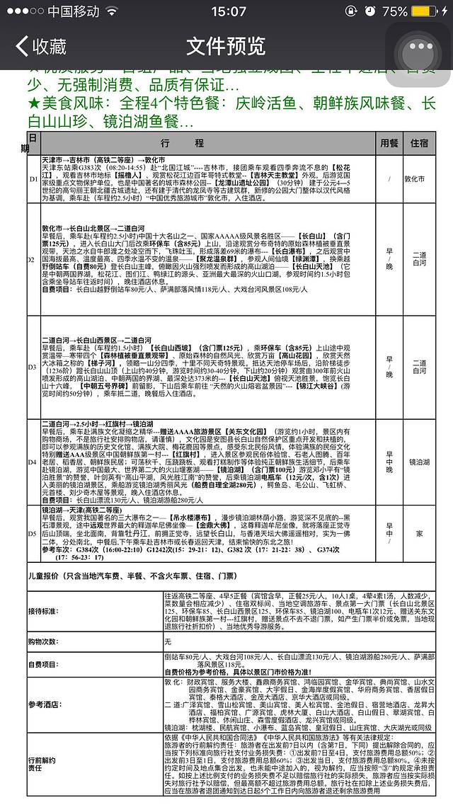这是我们团的行程安排,我们走的路线也不完全按照这个,具体的还要听地导的安排,像高山花园,8月花都凋谢了,就没有必要去了,梯子河没有开放也没去,团的费用是2580,因为包括路费,所以各个地方的价格应该也不同,自费的项目选择了大戏台河,倒站车,镜泊湖游船,去后的感受,值不值得去在下面再跟大家分享。