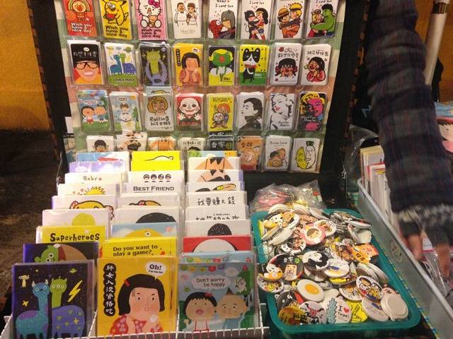 师大夜市还有很多学生原创制作的东西很有意思,徽章啊,明信片啊什么的都很不错。