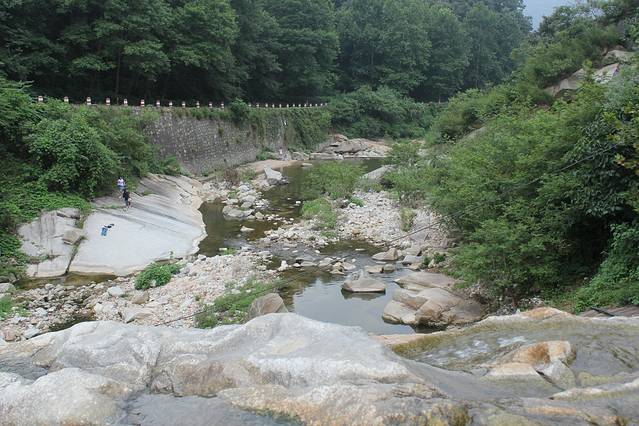 下午2点半左右开始下山,坐的是私家车类的,经路上偶遇的小学弟介绍,决定再去一下波尔登湖看看(重点是他们说他们要在那游泳,哈哈,我们不是怪学姐,我们只是喜欢水,要相信我~)。波尔登其实是一个森林公园,我们并没有进公园,而是顺着旁边的一条河往上走,会有惊喜哦,水静静的、轻轻地流着,有一种山水相印的感觉。我们坐在一个小瀑布旁玩水,学弟们在下面游泳,水不深,如果我们事先有服装准备,我们也跳下去玩了,景色很好,很适合在河边坐一坐,说说话,吃点东西~