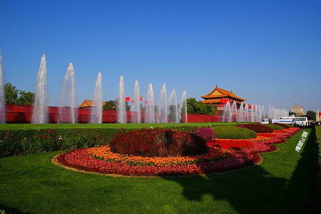 从中山公园出来,哪能不在天安门前瞻仰一番。因为不同的时候可能有不一样的收获。这不,我也是刚刚知道天安门前有喷泉的。
