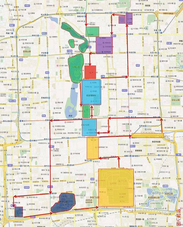 这个并不是一个行走路线,只是将不同的时间,不同的空间串了起来。所以也不好说得花多少天可以连贯的串下来,只是想按着这么个顺序念叨念叨北京城里的故事。