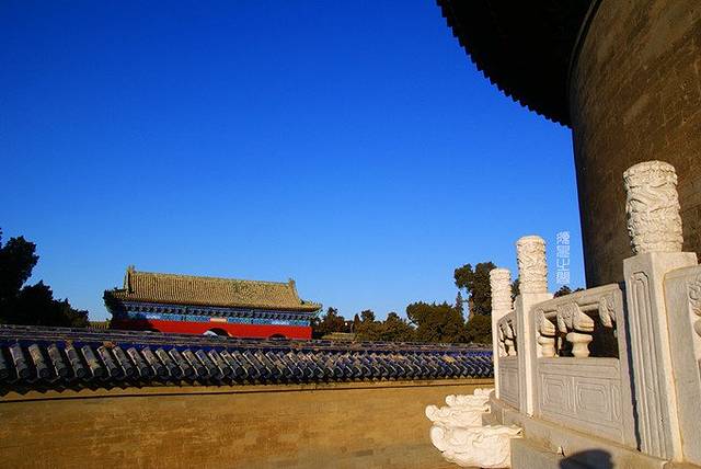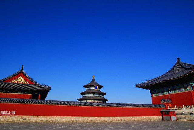 天坛的主要建筑祈年殿、皇穹宇、圜丘坛,从北到南连成一条轴线。