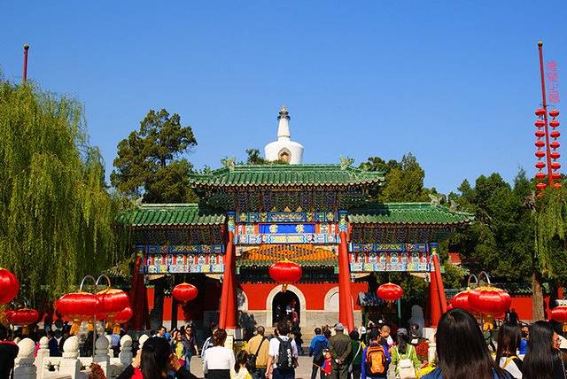 琼华岛上的大白塔甭提有多么的瞩目,往那儿走您就对了。
