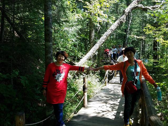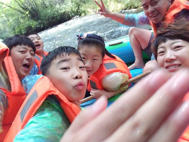 游览完长白山上的美景,也该体验一把“荡舟轻波上,人在画中游”之意境。这里要再次提到那位好心的农家大姐,通过她我们买到了50元/人的漂流票(正常漂流120元/人,在山门口凭西坡景区门票是80元/人)