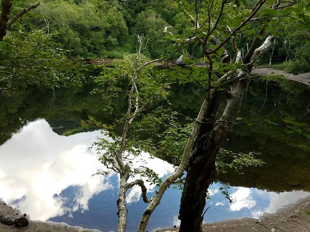 小天池又称银环湖,坐落在长白山景区海拨比较低的地方,湖的四周围被郁郁葱葱的树林环绕着,湖水绿得透亮,静得如同一面大圆镜。虽没有天池那么壮观,但却格外幽静。