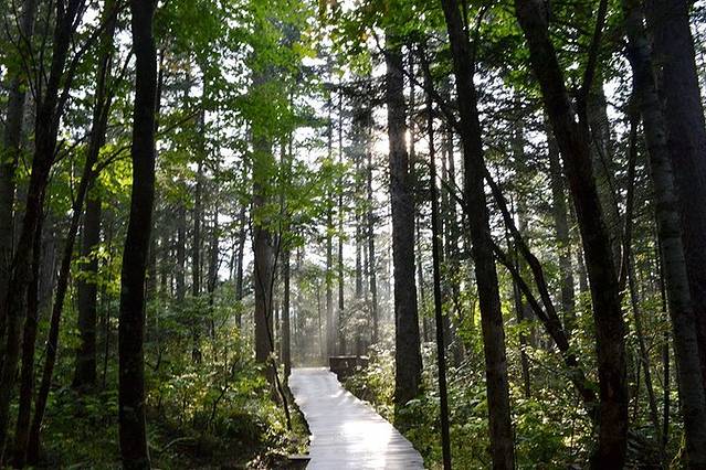 长白山谷底林海距长白山冰场东五公里,洞天瀑布北侧。谷底谷松参天,巨石错落,人称谷底人家,为长白山海拔最低的景区,又称地下森林和火口森林。长白山区到处都有茂密的森林,古木参天,遮云蔽日,因而有“长白山林海”之称。林海按海拔差异,分岳桦林带、针桦林带、针阔混交林带三大林区。林海内不知名的针叶树密密麻麻无边无际;几搂粗的大树干健壮挺拔,直插云霄。在苍然古木的四周不乏枝干纤纤的幼树,但无论长幼一率呈现出一派不修边幅的自然美和血脉贲张的野性美。阳光经过茂树繁枝的过滤照在密林里,仿佛一幅没有保存完好的陈年古画,看上去是那样的斑斑驳驳,那样的幽幽暗暗。
