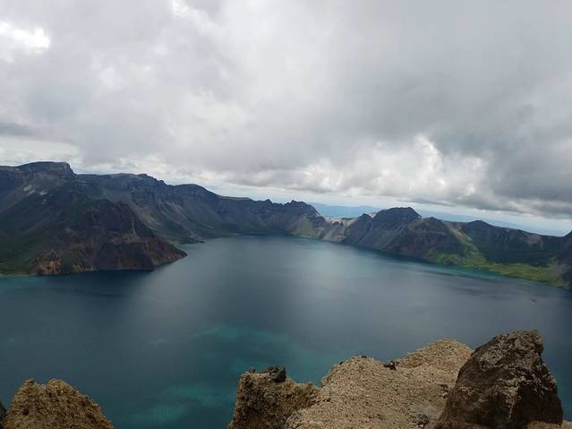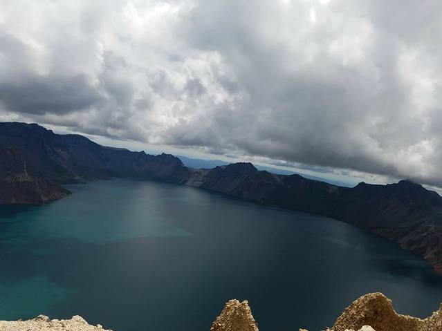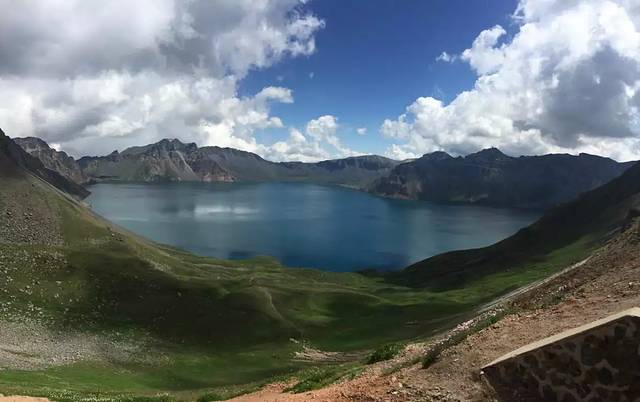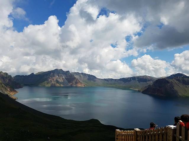 长白山天池位于长白山主峰火山锥体的顶部,是中国最大的火山口湖,荣获海拔最高的火山湖吉尼斯世界之最。它是松花、图们、鸭绿三江之源,是中朝两国的界湖。每隔一年,长白山都会有一个奇景,就是,水里会有火冒出,那是因为天池水里的物质与水面发生冲破,会产生火焰。这里每年都会吸引很多游客不远万里来观看天池,也有一大部分人看不到天池,失望而归。因此在出行前我曾关注过长白山天气,非常担心天气不好,看不到天池。站在山脚下,看着山顶上时而阴时而晴,我的心忐忑不安,如果这次看不到天池,下次再来还不知得等到什么时候呢?人们都说天池是有灵性的,大概她看到了我们的热情和善良,让我们看到了她的真容。
