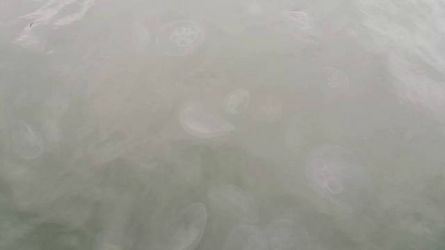 忽然水面上有很多浮游生物,是什么东西?噢!是水母(也就是海蜇)!