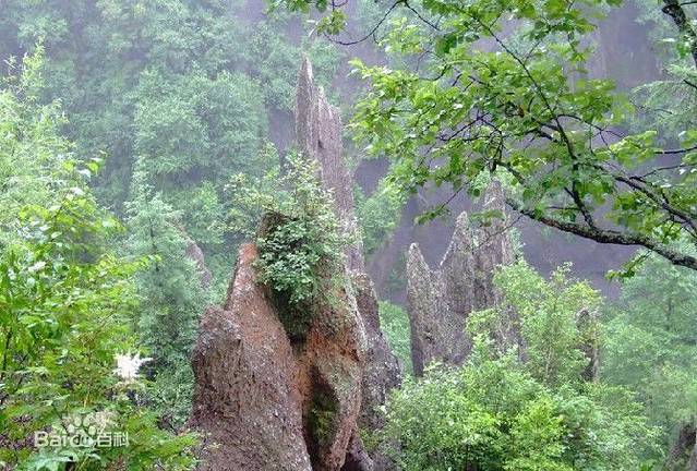 从二道白河峡谷上的公路北侧的一条林间小路蜿蜒伸向密林深处,沿途有遮天辟日的原始森林,如丝如缕飞挂萦绕的地衣、松软厚实的苔藓好象为远道而来贵宾铺设的绿毯。站在谷地森林的边缘,整个谷底森林可尽收眼底,耳畔有二道白河的潺潺水声,眼前是绿涛滚滚的谷底林海,谷壁高达50—60米,谷底南北长约2500—3000米,谷底古树参天,巨石错落,吸一口森林新鲜的空气,不禁令人赏心悦目,心旷神怡。