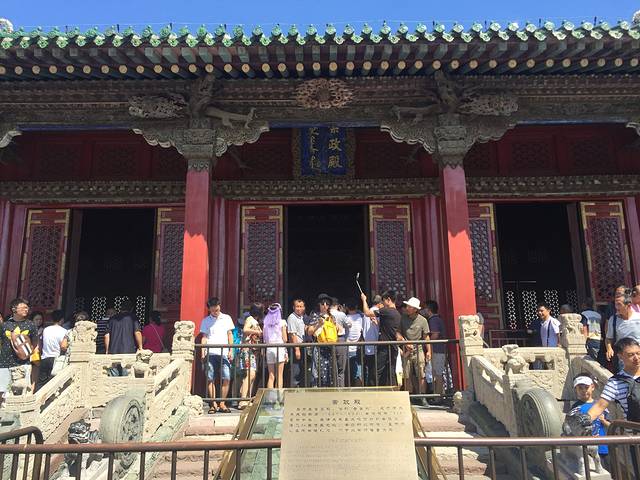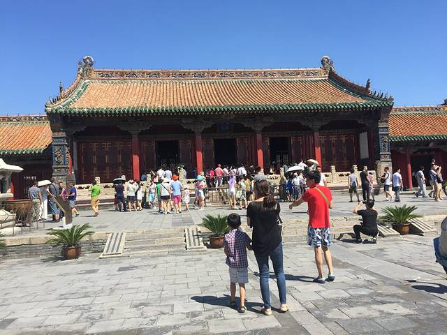 沈阳故宫,原名盛京宫阙,后称奉天行宫。位于沈阳市沈河区明清旧城中心。占地面积约6万平方米,有建筑90余所,300余间。始建于后金天命十年,初成于清崇德元年 。清顺治元年,清朝移都北京后,成为“陪都宫殿”。与北京故宫相比,沈阳故宫建筑风格上更添有满、蒙的特色。在布局上,东路大政殿、十王亭建筑群布局仿照八旗行军帐殿(大幄次)的布局。中路的特点则是“宫高殿低”,居住部分位于高台之上,俯瞰理政的正殿区域,这是来源于满族人喜居于台岗之上的生活习惯。在建筑风格上,以汉族建筑风格为主,兼备了蒙、藏艺术。沈阳故宫按照建筑布局和建造先后,分为三部分:东路为努尔哈赤时期建造的大政殿与十王亭;中路为清太宗时期续建的大中阙,包括大清门、崇政殿、凤凰楼以及清宁宫、关雎宫、衍庆宫、永福宫等;西路则是乾隆时期增建的文溯阁等。整座皇宫楼阁林立,殿宇巍峨,雕梁画栋,富丽堂皇。