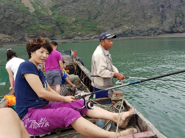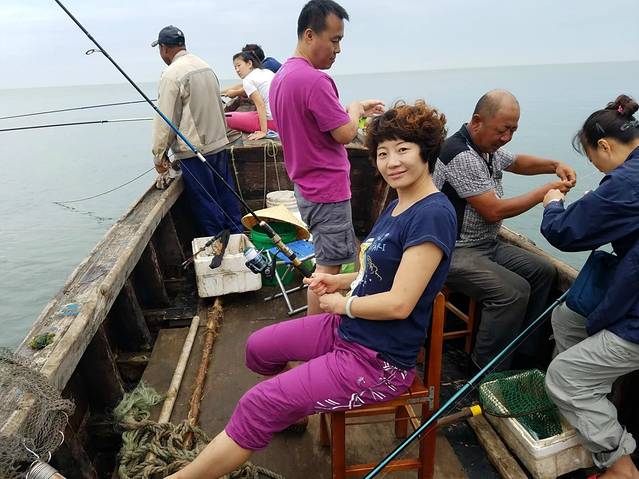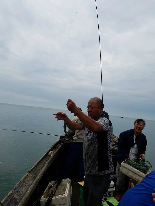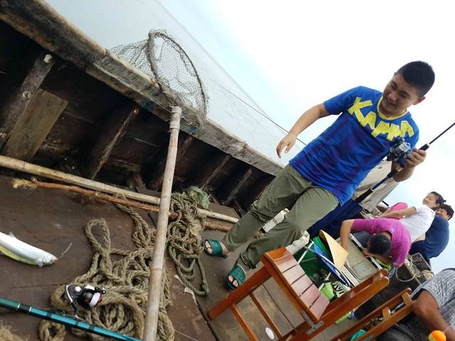 船慢慢驶向大海深处,大叔们娴熟的洒下渔网,帮我们整理好钓竿,开始捕获我们的猎物。