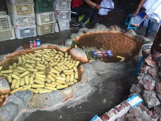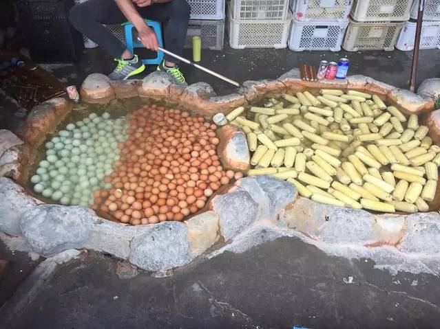 在这里有温泉鸡蛋和温泉玉米,都挺贵。火车上有当地人告诉我们这些鸡蛋和玉米都是事先煮好的,所以我们没有品尝,事实证明我们的选择是正确的(后来发现垃圾桶里扔有很多半生不熟的鸡蛋)