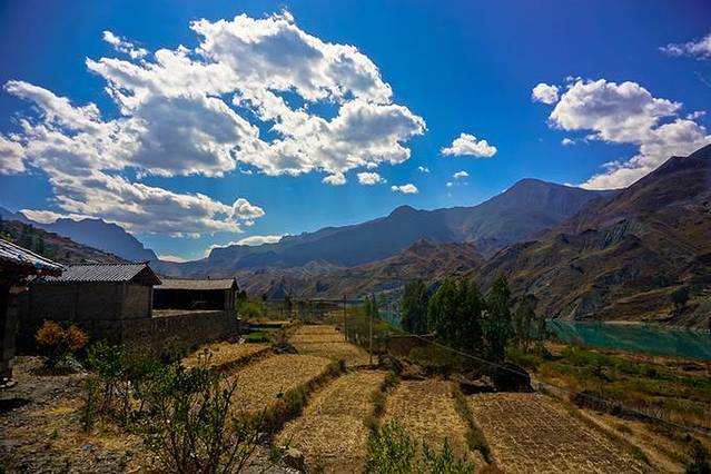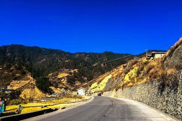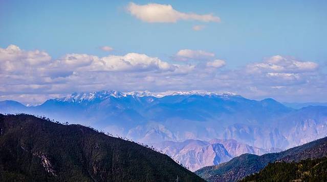 S208丽江旅游小环线在一年前通车,路面状况还不错,由于一路翻山入谷,最大的亮点是沿途迤逦多样的自然风光,从干热谷地到亚寒针叶林到高山雪顶一应俱全,从丽江出发后第一个高山垭口便可远眺稻城亚丁的群山,行至金沙江旁鸟瞰金沙江河谷,过金沙江后一路爬升1000余米,行至宝山乡还可以仰拍玉龙雪山。S208一路多弯,中午在拉伯村午饭时路遇对向而来的3辆眉山老乡,他们从丽江到拉伯村的时间比我们后来从拉伯村到丽江的时间多了差不多一个小时。