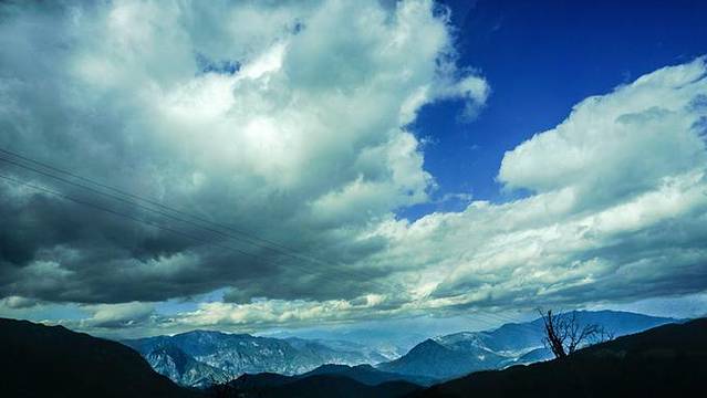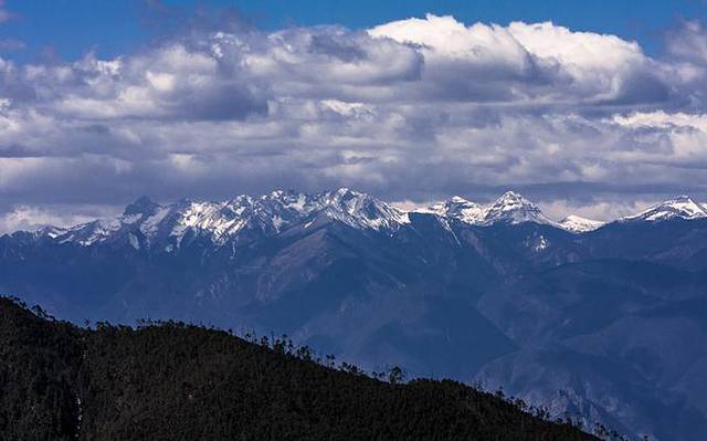 远处飘着云朵的山头,应该是瓦屋山和峨眉山