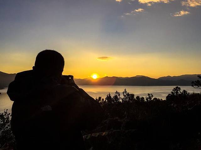 近处的小岛便是尼色岛,6点10分起床,驱车来到垭口观景台的时间大概是6点50,天刚蒙蒙亮。