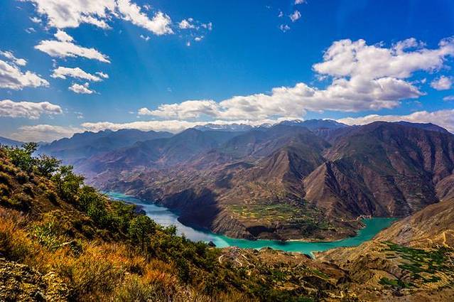 拥有1000多米巨大垂直落差的金沙江河谷:枯水期的金沙江库区是碧绿的颜色