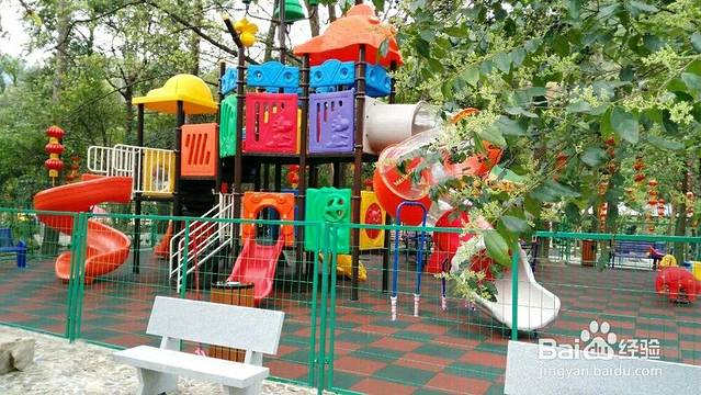 进到大门口不远就有一个儿童游乐场,周围都有椅子,大人也可以进去的。