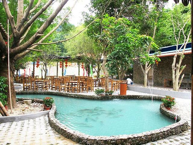 奇石河餐厅装修的非常的农家乐,里面有一个小水池,养了许多鱼,真的非常可爱。