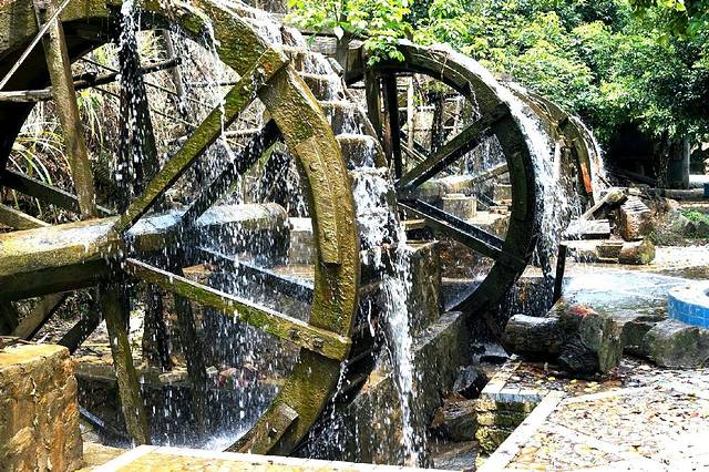 再走近一些就是风车,一排的风车在洒水,真的好浪漫哦!水洒出来,地上宜家湿了好大一块,水冰冰凉的,很舒适