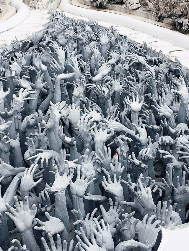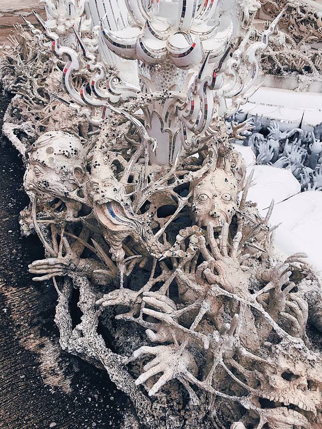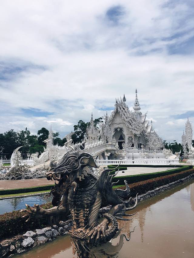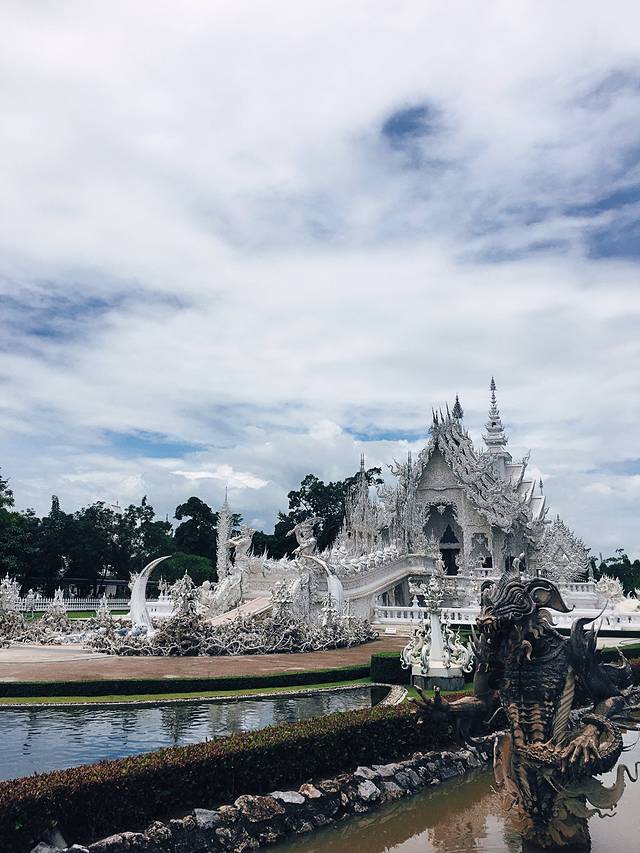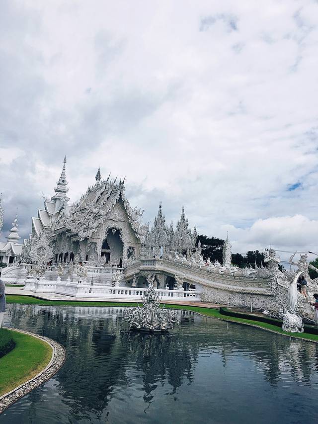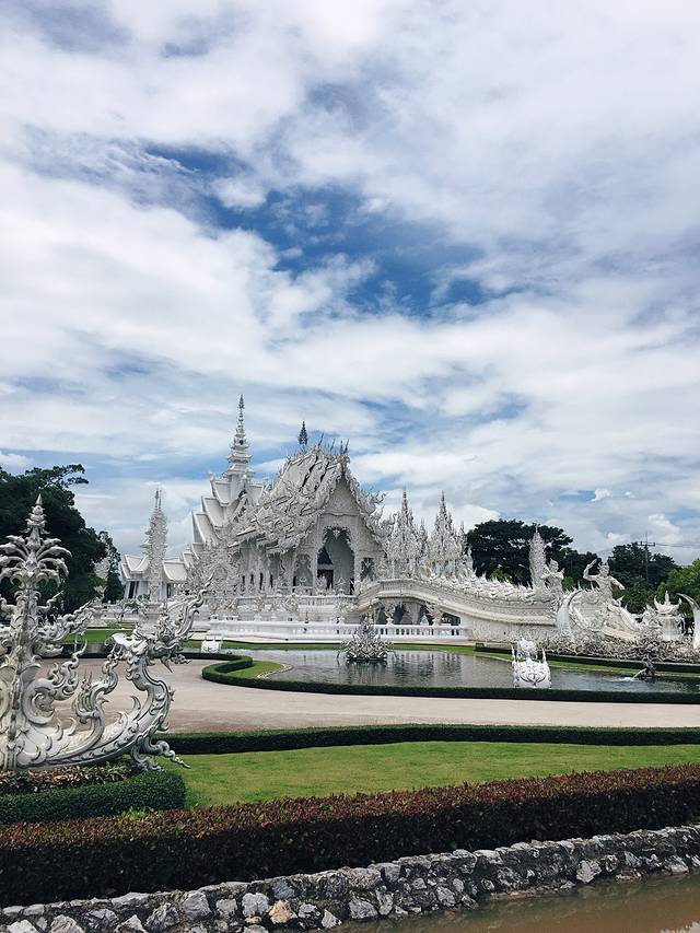 看惯了泰国那些金光闪闪的佛寺,说实话我已经产生了严重的审美疲劳。(不夸张的说,感觉清迈十步一座庙)然而,在蓝天白云下这座洁白的,如同圣地一般的庙宇…美的甚至有些不真实……就这样被其征服。