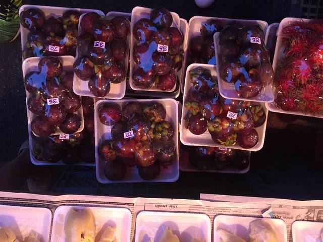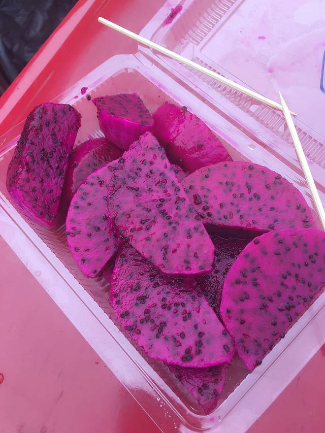 猪蹄饭显然木有满足我…后来我陆续吃了芒果糯米饭等…得出的结论是:网红店可能比较适合中国人的口味,但不够地道。如果你追求当地的地道美食,还是放下手中的介绍,点评。走在喧闹的街道,寻找泰国当地人经营的路边摊吧!图片里的玫瑰火龙果只要20b…相当于4块钱!