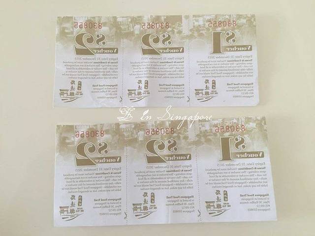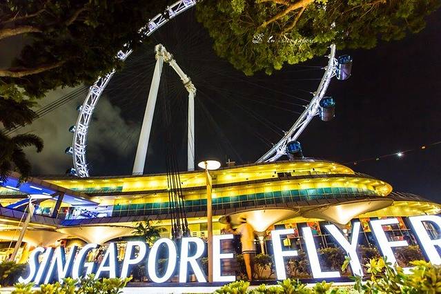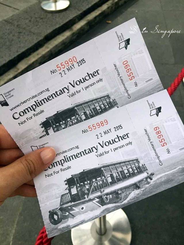 换完票从滨海湾花园坐一站地铁就是宝门廊站,A出口走5分钟就是摩天轮,我们是换完票直接步行过去的,因为坐地铁也要走路,觉得时间上差不多。摩天轮下面有一个路边摊,用全景通卡在最里面水吧处(卖燕窝水的老大叔)每张可兑换5新币的代金券,这个代金券的有效期要到年底,我们当时都不饿,况且坐完摩天轮还可以去吃老饕湾,想着过两天住金沙时来吃,谁知到旅行结束都没有时间再回来,两张券至今还在旅行箱里。