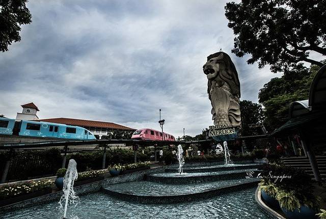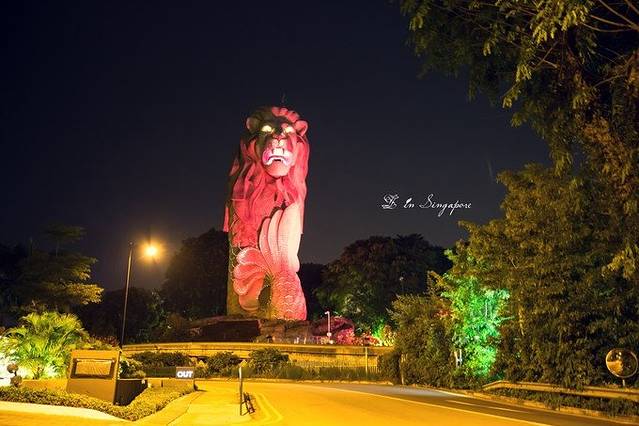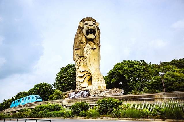 酒店对面的就有座鱼尾狮。这座鱼尾狮是新加坡三个鱼尾狮里最大的一个,高约30米,感兴趣的可以买票到狮头的最高点俯瞰圣淘沙全景。