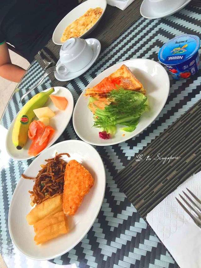 早上睡到七点半左右,就去一楼吃早餐,早餐品种不算多,但该有的都有,味道也算过的去,无论室内室外环境都不错。印象最深刻的是水果的种类很多,蜜瓜西瓜香蕉菠萝李子苹果梨等等。长得很好味道也甜,导致这三天每天早上都吃很多水果。要知道在新加坡自己去买水果可是很贵的。酒店每天早上会贴心地放一份当天的报纸在各房间门口,早餐时边看报纸边喝咖啡,也无疑是种慢节奏的生活享受。