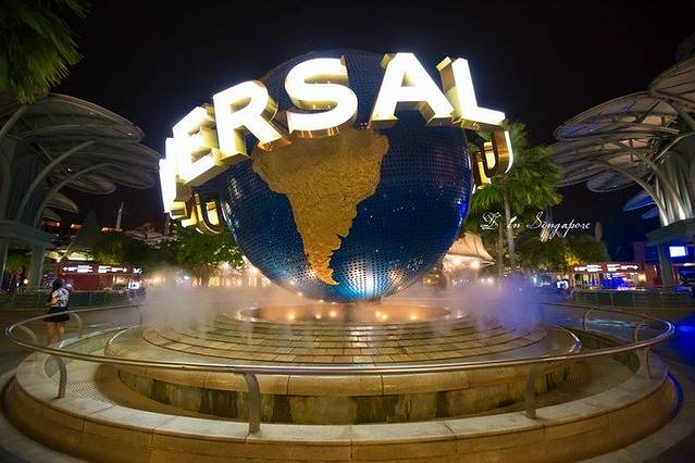 回酒店整装后就坐捷运到滨海站,来到了圣淘沙最热门的景点环球影城。环球影城的营业时间是上午10:00-晚上19:00,票价72新,淘宝或其他旅游网站基本250RMB内就可以搞定。或者像我们一样买一张开通狮城全景通卡,环球就是我开通使用的第一个景点,其实本来我们是准备先玩市区第二天在卡截止失效前再来环球的,因为环球是可以玩一天的景点,在这里开通这张24h内有效的卡显得不合算,但考虑到明天是周六,环球人肯定超级多,要花大把的时间在排队上,又觉得每人花30新币买优先通道卡太不值,想着第二天一早去动物园也是一样的。所以,在早上10点的时候就换了门票,换票点就在大门口左手边的游客中心,当时我还特地咨询了能不能换次日或其他时间的门票,得到的答案很坚定:不可以。除了门票外,每人附赠了5新币的代金券,这个在影城里任意一家餐厅都可无门槛使用。另外送的5新币购物代金券需要购满35新才可抵用。