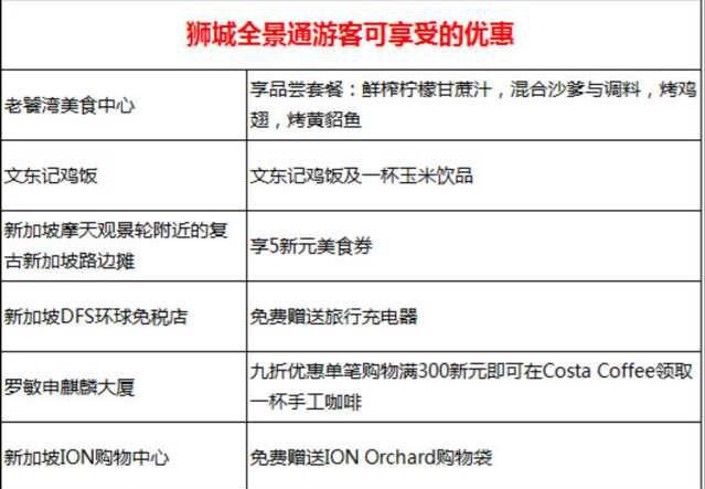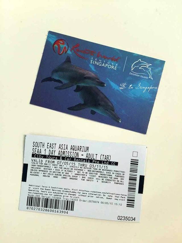 门票在淘宝买了2张狮城全景通卡,每张是375元。另又在穷游网上订了sea海洋馆门票,每张69元,这个价格比淘宝略低一些,是要打印订单后到名胜世界地下的停车场兑换门票的。下面重点说一下狮城全景通卡,这张卡涵盖了13大景点,听起来确实物超所值,但是卡是在开通后24h内有效的,但是一天内是根本玩不了那么多景点的,所以建议购此卡的出行前必须好好规划一下。此卡需在各景点指定地点兑换门票,这个下面会具体说。其中,滨海湾花园兑换后的门票有效期是半年,也就是说可以先换票后使用,其余景点都是必须当日换票当日使用。环球影城之前看到有人说有3个月的有效期,但好像在4下旬起就只能换当日票。我们用全景通卡去了环球影城、摩天轮、滨海湾花园、克拉码头游船、路边摊、老饕湾美食中心,也算是值回了票价。由于是上午十点去环球影城开通的卡,本来第二天一早还要去动物园的,但那天早上下了一上午的大雨,又考虑到路程实在太远,就果断放弃了。怎么说呢,狮城全景通确实能节省一部分钱,但从某种程度上说限定了你的行程,如果体力不佳的就不建议购买,因为在淘宝或其穷游等旅游网站购买门票也不会差太多,那样还能自己根据天气等突发情况调整行程。想省钱的可以出行前多关注些旅游网站,我就在穷游上看到过滨海湾花园1元的抢购票,还有淘在路上199元的环球影城票。