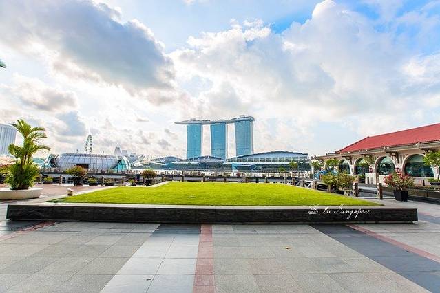 九点不到太阳却已经很刺眼,这时已经有旅游团的人拥簇在那里,拍照还要排队。看来10点到下午4点都不建议来,晒死。晚上来这里看滨海湾夜景,观赏金沙激光秀应该是一个不错的选择与视角。