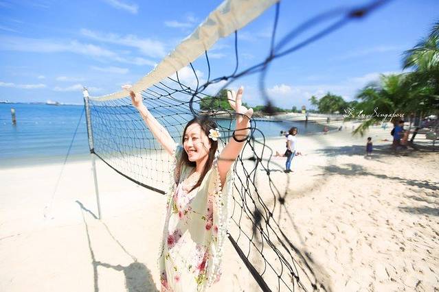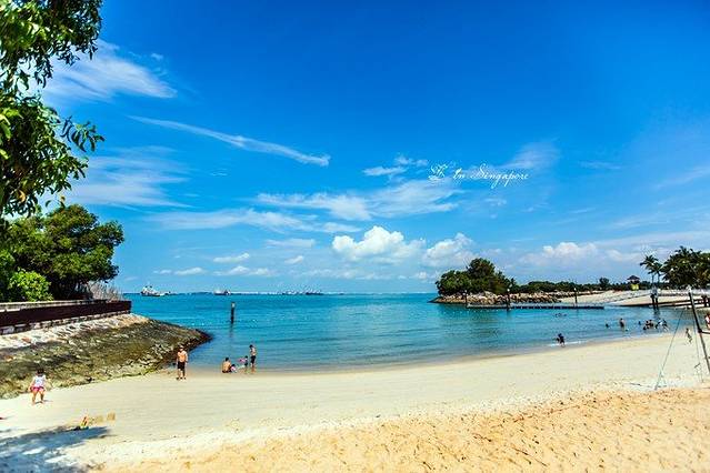 放下行李,简单换身衣服,坐酒店对面的小火车一站路就来到了西罗索海滩。圣淘沙岛一共有三个海滩,分别是巴拉湾海滩、丹戎海滩和西罗索海滩,都是在捷运海滩站下。只要跟着站点的指示牌走就能轻松找到。圣淘沙捷运一共就四个站点三站路,从连接市区地铁的Habourfront→滨海站→英比奥站→海滩,运营时间是早上7:00到晚上12:00。我们的酒店就在英比奥站。由于天色阴沉,匆匆随意拍了两张就准备去名胜世界吃饭了。