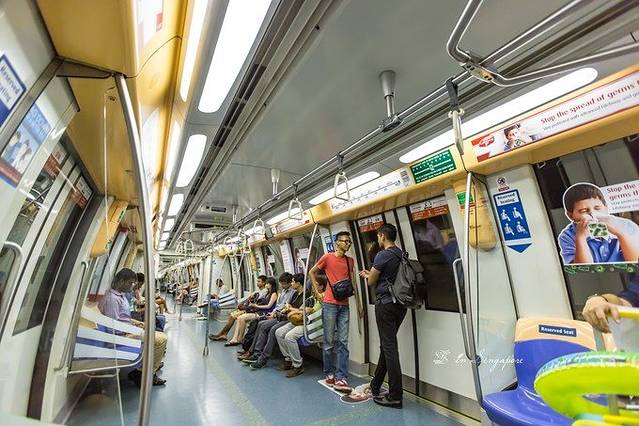 新加坡的地铁不像国内城市那般拥挤,我们乘坐时基本都会有空位。