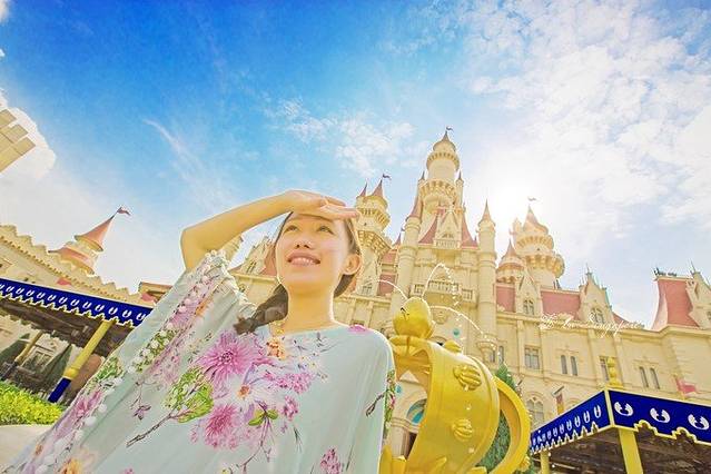 入园后可以先取一张地图,圈出感兴趣的项目,规划好后再走。如果是一开门就进去的建议先去玩变形金刚,那样可以最大限度地减少排队时间,因为变形金刚是排队最久的项目,但如果是中午时分入园的则建议先玩其他项目,等四五点以后再去玩变形金刚,这样就正好错开了中午队伍最长的高峰时间。我们算是一开园就进入的第一批游客,可惜朝着逆时针方向走了,跟着LG去城堡那里了,真的是一点意识都没有啊,导致后来变形金刚排了1个多小时的队。你们会发现刚入园拍的几张照片连个人影都没有。我想是大家都去玩变形金刚了吧。不过即便是排了一个多小时的队,依然觉得值,甚至还想再玩一遍。