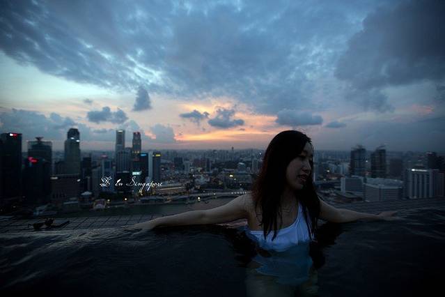 早上5点的闹钟,换衣洗漱化妆6点准时到达无边泳池,检查门卡的小哥也已兢兢业业地站在了那里,这时天还没亮,城市灯火还没灭,泳池已经有不少人了,没想到有人比我们更早,可见此泳池的魅力啊,大家都拿着手机、自拍杆拍照,还听见有个广东男人在池里打电话,说你们怎么还不上来啊,我五点半就泡着了。我心想无边泳池不是六点才开嘛,看来说是6点,其实不到6点就可以上来了。大家也都是蛮拼的。