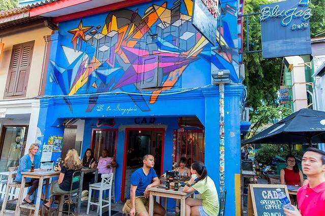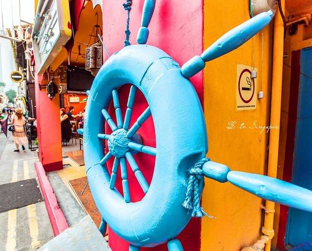 放下行李,此刻烈日当头,我们并没有先去观景台和无边泳池,而去了甘榜格南的哈芝巷。坐地铁到武吉士Bugis站,B出口,走过莱佛士医院,到了Ophir Road过马路后右拐,沿着Golden Landmark Shopping Complex直走第一个路口左转,对面第二条巷子就是了。