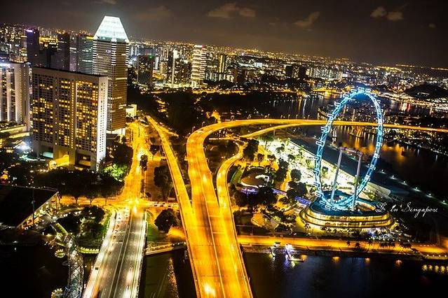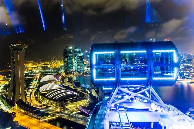 摩天轮的换票处是在一楼customer service,印象中就在购票处斜对面那条小道走到底倒数第二间。大约等了5分钟不到,就轮到我们了,八人一间,里面比想象中大很多,其他人都坐在那里欣赏夜景或是用手机拍照,我们一进去就开始弄三脚架,找角度,装cpl,请原谅初级摄影爱好者,对一切的新装备都是那么地不熟练,我们刚开拍没几张,还没来得及调整就已经到达最高点了,其实转一圈的时间将近35分钟,但我们却觉得这一圈过得如此之快。都还来不及好好感受。
