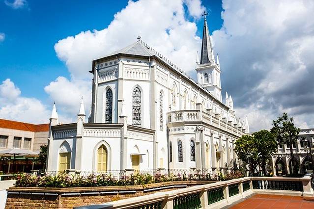 磨磨蹭蹭、寻寻觅觅花了近一小时的时间才找到了圣安德烈教堂,那里有块地方在修路,害我们走了不少冤枉路。这个路程说起来有点复杂,大家看地图走就好。不想走路的果断打车吧。如果不是从鱼尾狮走,坐地铁更方便,在市厅City Hall站B出口,出来背面就是了。因为鱼尾狮离地铁站也有一段距离,所以我们选择了直接步行。