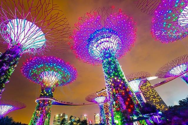 滨海湾花园室外是免费的,两个冷室(云雾森林、花穹)、空中走道是收费的,门票都是可以分开购买的。全景通是三个都包括的。两个冷室建议白天去,空中走道一定要晚上去。