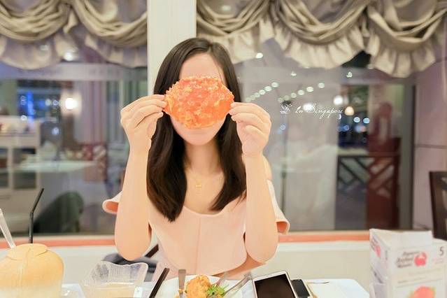 摩天轮出来往左手边(地铁那个方向)直走十分钟左右,就到了老饕餮美食中心,位置就在外形像榴莲的滨海艺术中心旁边。那里热闹非凡,有点上海大排档的感觉。我记得是在靠近最外面的卖冰沙饮料的位置兑换的美食,其实我们当时不太饿,但都已经渴死啦,感觉我们根本不适合暴走啊。吃喝完毕,还是不解热,我们又买了一个刨冰吃,那里的东西不贵,刨冰折下来15RMB的样子。