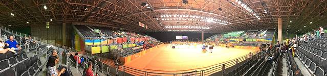 整个场馆的内部以蓝色为主色调,看上去干净而清爽。体育馆的每个出口边上都有洗手间,很方便。观众还可以在出口外面买奥运纪念衫、吉祥物等纪念品,价格和纪念品商店里面都是保持统一的。