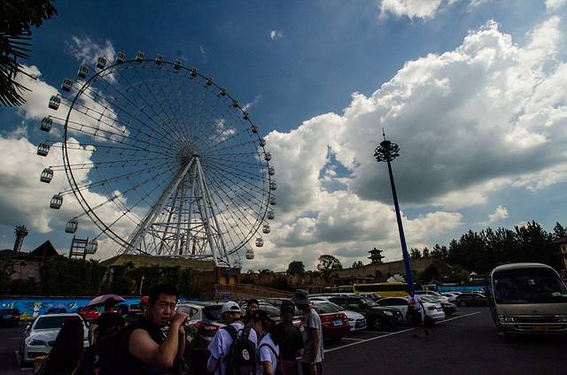 梦幻谷标志性建筑代表的摩天轮远处就能够看得到欢乐开怀的气氛了。