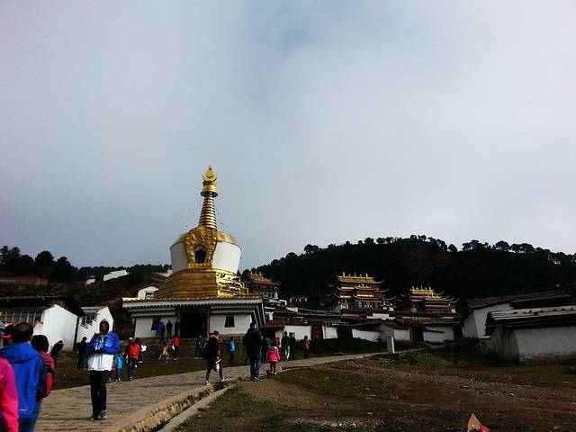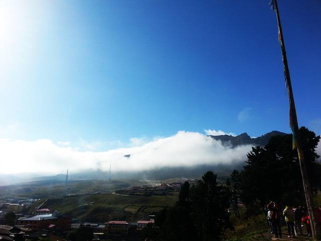 但是想看到贡唐宝塔佛光普照的景象并不容易,到了9点,阳光却穿梭到层蛮谍雾中了,并不显得灼烈。索性下山游寺。
