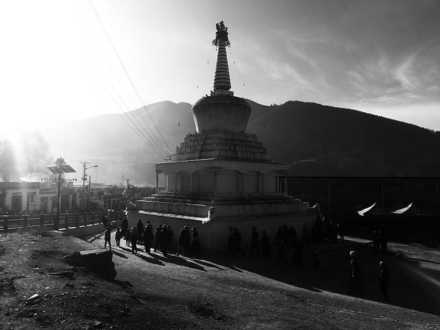 趁着阳光尚未普照贡唐宝塔,找了个人少的地方。